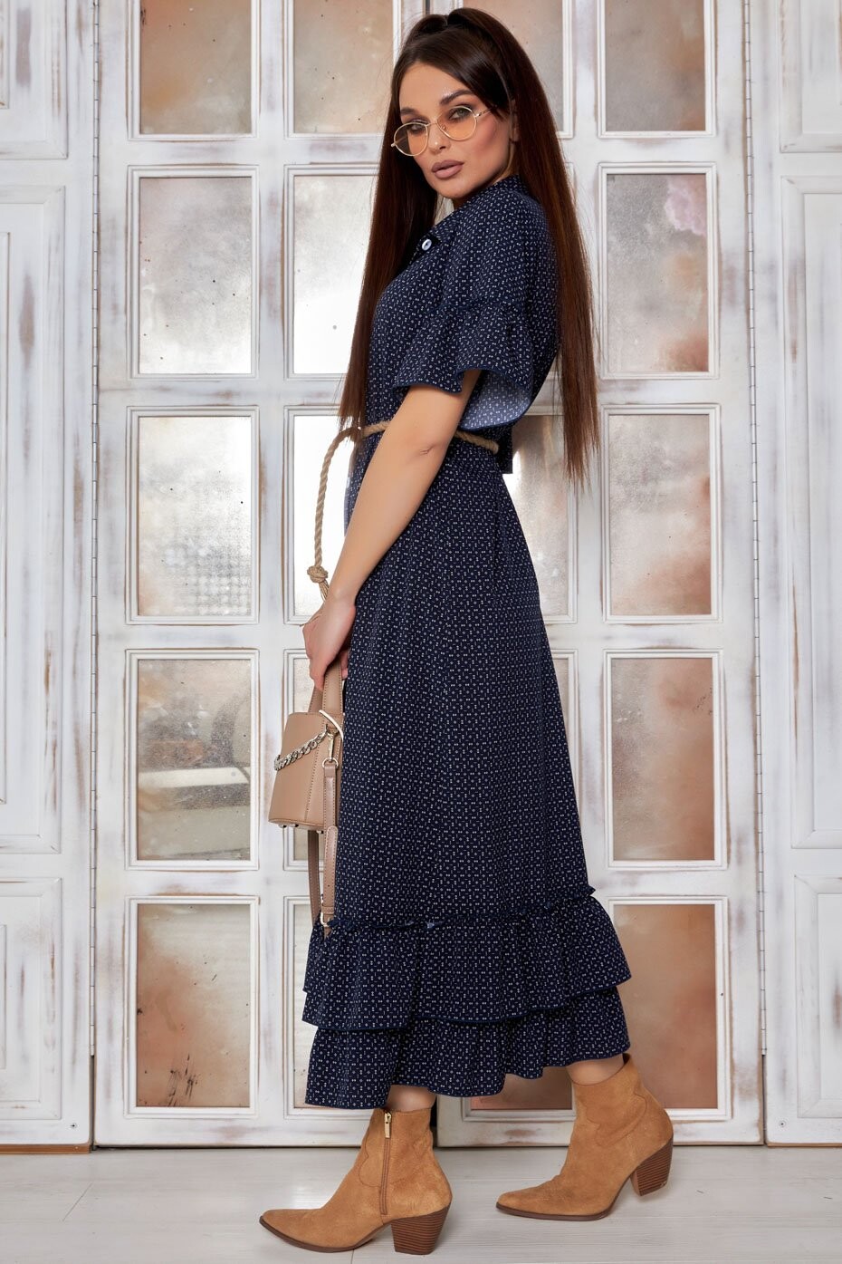 Шикарное городское платье в ассортименте интернет-магазина ST-Seventeen. Наряд выполнен в практичном синем цвете и представлен с длиной за колено. Сексуальный вырез посередине платья, сборка рюшей на рукаве и юбке, а также всеми полюбившийся воротник стойка. Каждый декоративный элемент и фурнитура над которой поработали лучшие дизайнеры создает целостный, неповторимый образ женственности и красоты.