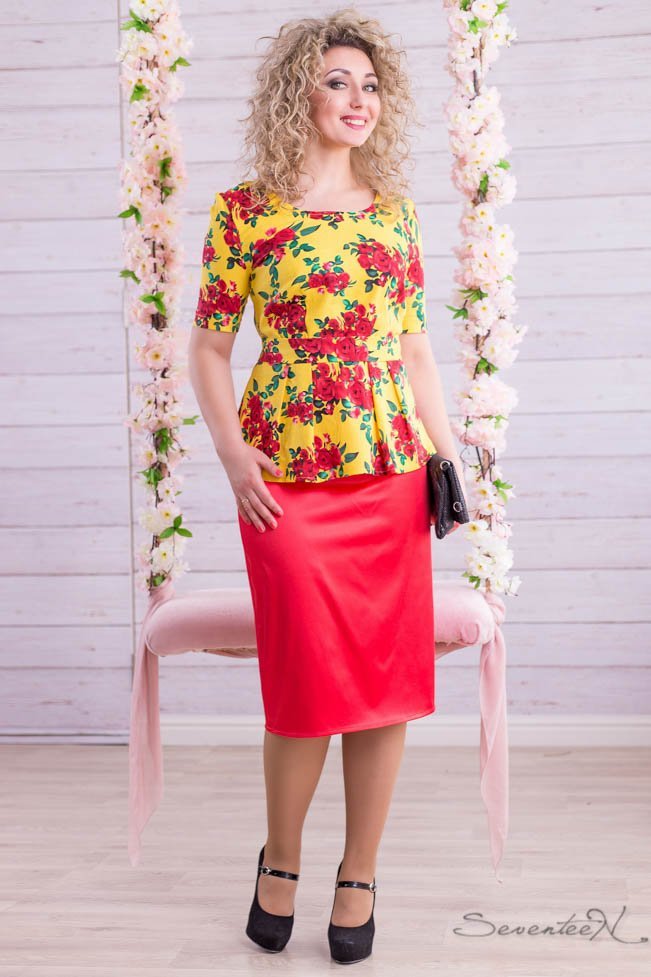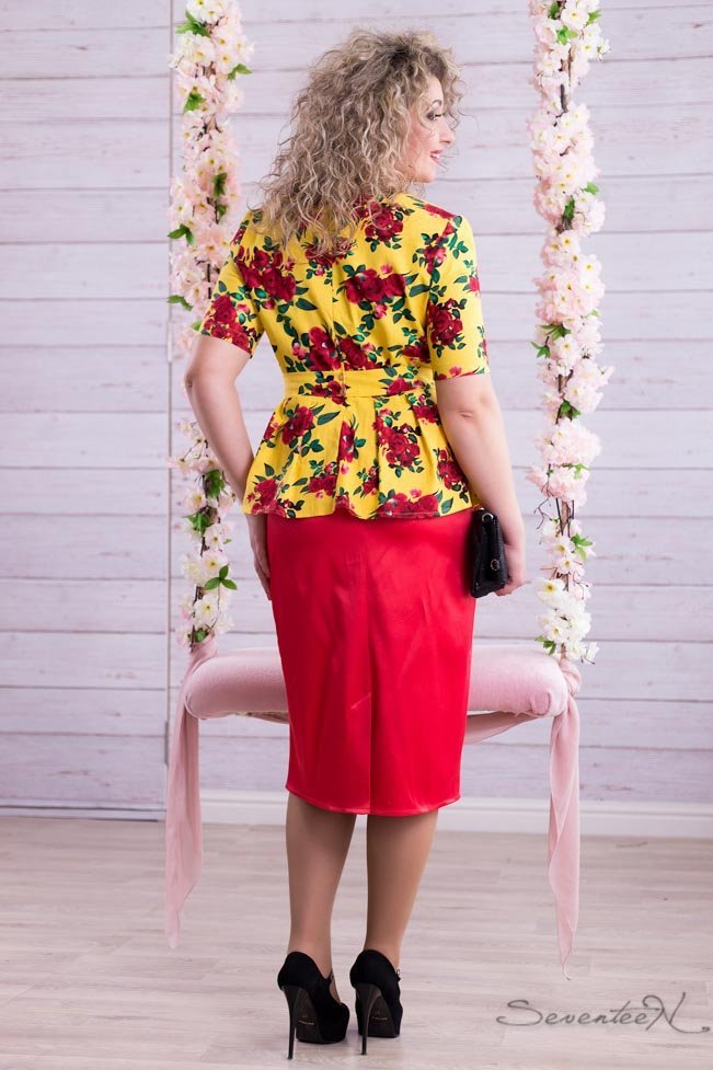 Яркая, контрастная модель костюма делает силуэт изысканным за счет подчеркнутой поясом талии. Расклешенный низ визуально ещё больше утончает талию, придает аппетитной пышности и изящности фигуре. Элегантная длина юбки и рукавов позволяет носить модель как в деловой жизни, так и в торжественные моменты. Куда бы Вы не пошли в ресторан или на променад будьте уверены: все восхищенные взгляды ваши! Желаете удивлять ярким образом и ловить вожделенные взгляды мужчин? Тогда эффектный летний костюм от производителя ST SEVENTEEN именно то, что Вам нужно! Красная юбка из атласа высочайшего качества очень приятна на ощупь, а желтый, с яркими цветами, пиджак из натурального льна просто прелесть! Он позволяет чувствовать себя комфортно даже в самое знойное лето. Купить красочный наряд-двойку красно-желтого цвета в нашем интернет-магазине можно, сделав всего несколько кликов мышью! А еще мы делаем очень выгодное предложение оптовому покупателю цена продукции гораздо ниже, и Вы сэкономите значительную сумму.